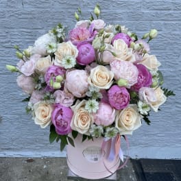 Price: $200.00 Mix flowers box with peonies. The photo shows a deluxe size. Product Tags: Same-day Delivery