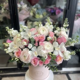 Price: $200.00 Mix flowers box with peonies. The photo shows a deluxe size. Product Tags: Next-day Delivery
